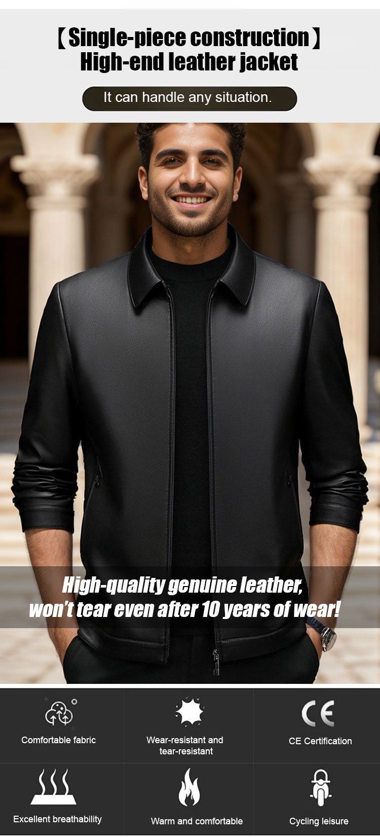 Luxury Men's Lapel Leather Jacket